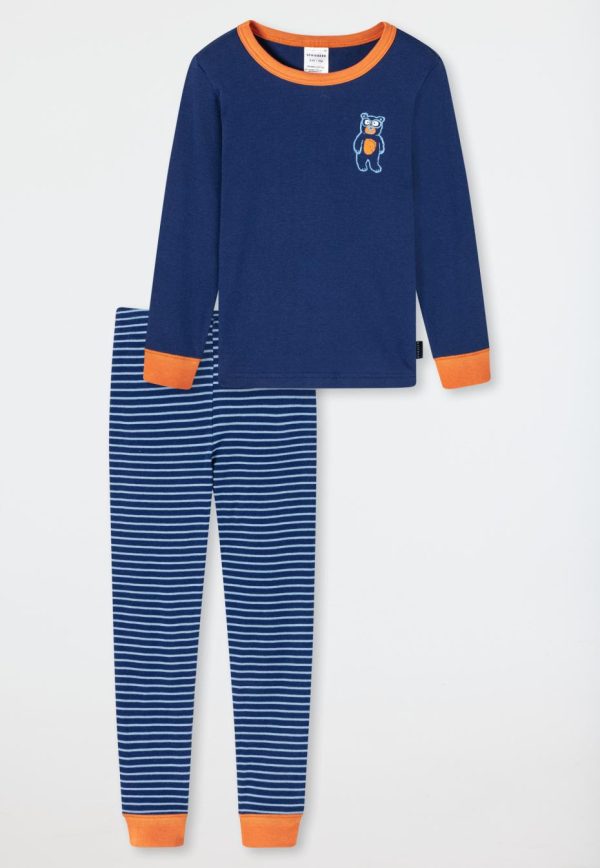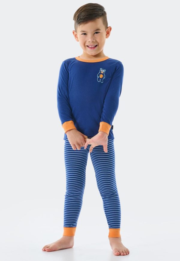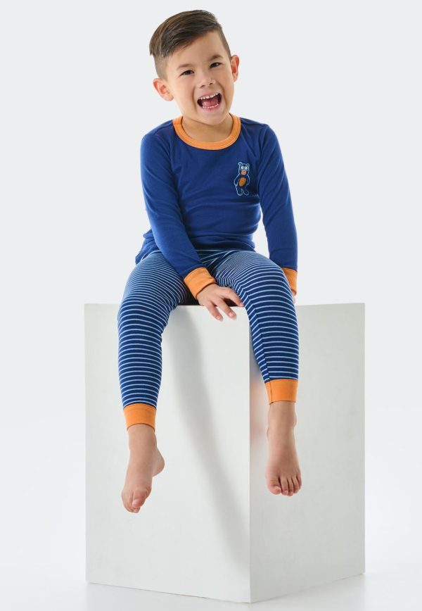 - enganliegende, geringelte Schlafhose in Hellblau mit softem Bund