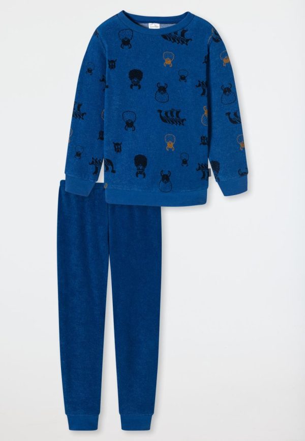- langer Jungenschlafanzug in Blau mit Wikinger-Allover
