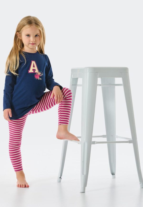 - geringelte Schlaf-Leggings in Beere und Off-White mit softem Bund