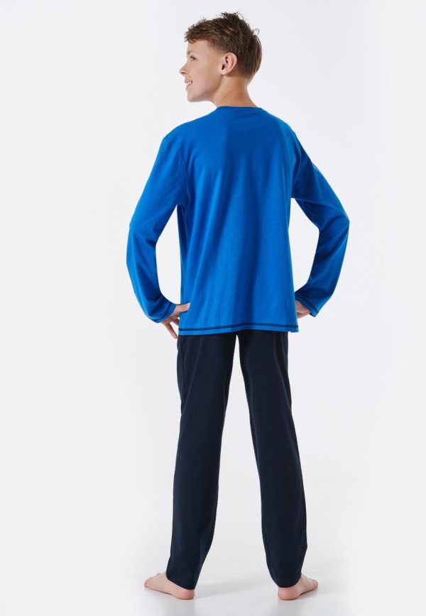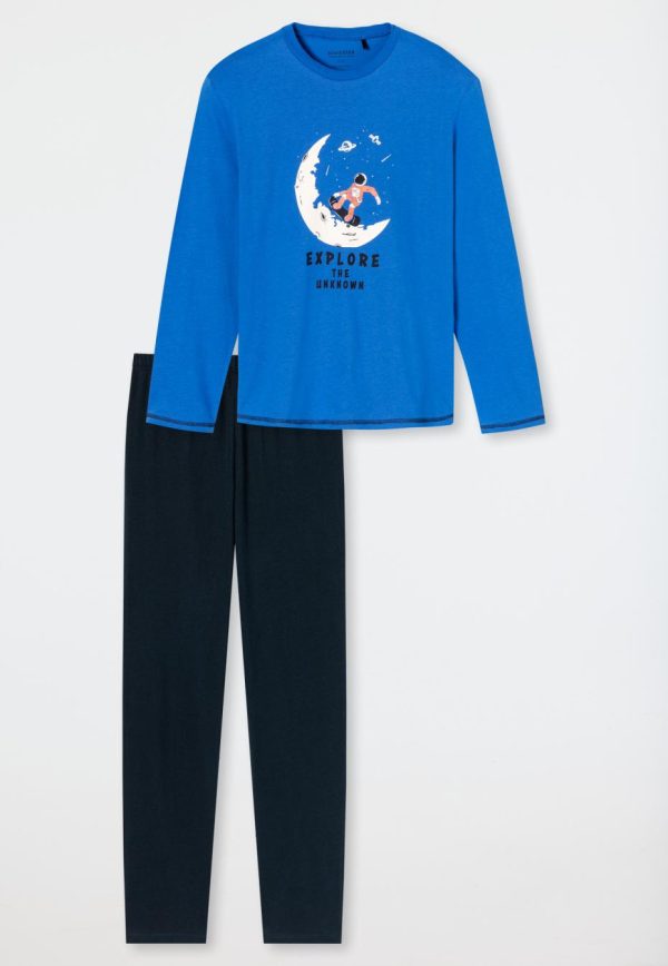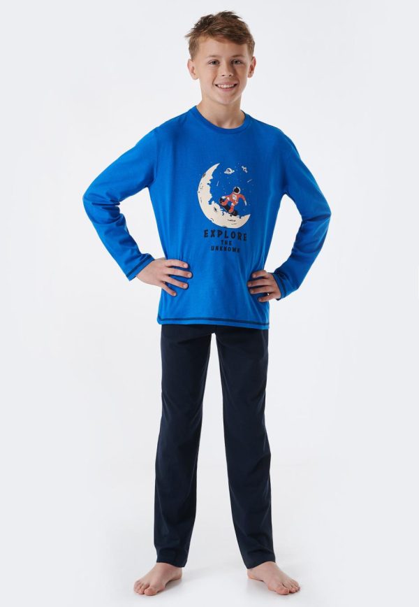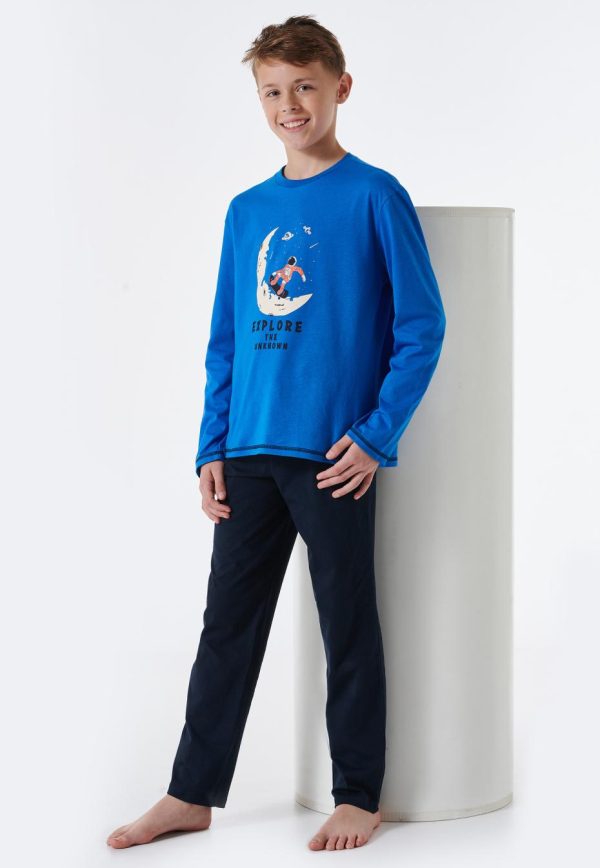 - langer Jungenschlafanzug in Royalblau mit Astronaut-Motiv und nachtblauer Schlafhose