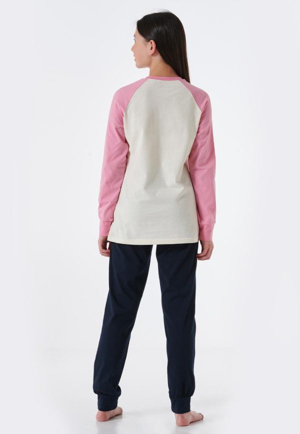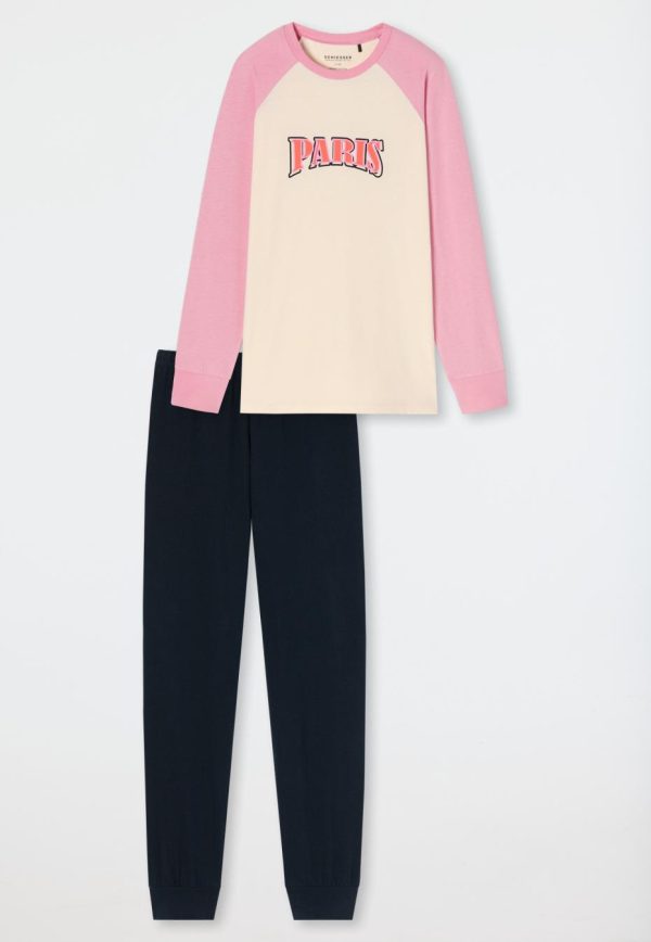 - rosaweißes Langarmshirt im coolen College-Stil mit pinkrotem „PARIS“-Schriftzug auf der Brust