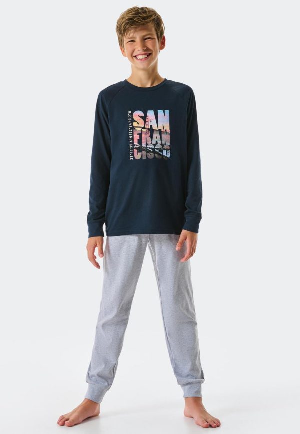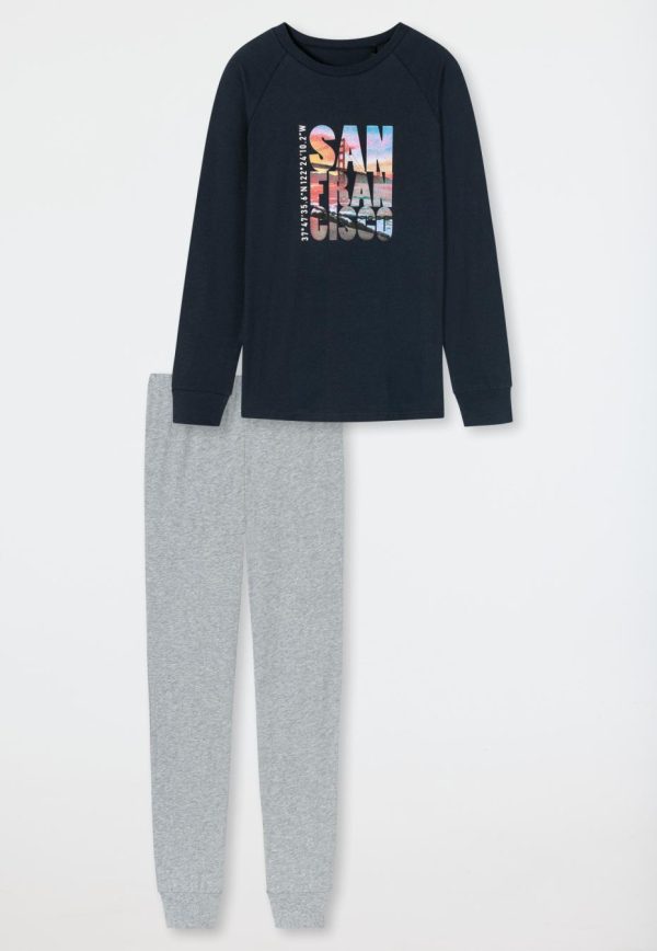 - nachtblaues Langarmshirt mit Rundhalsausschnitt, Raglanärmeln und „SAN FRANSISCO“-Motiv