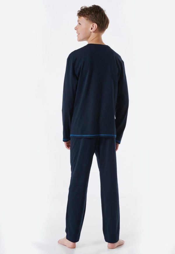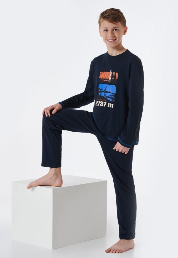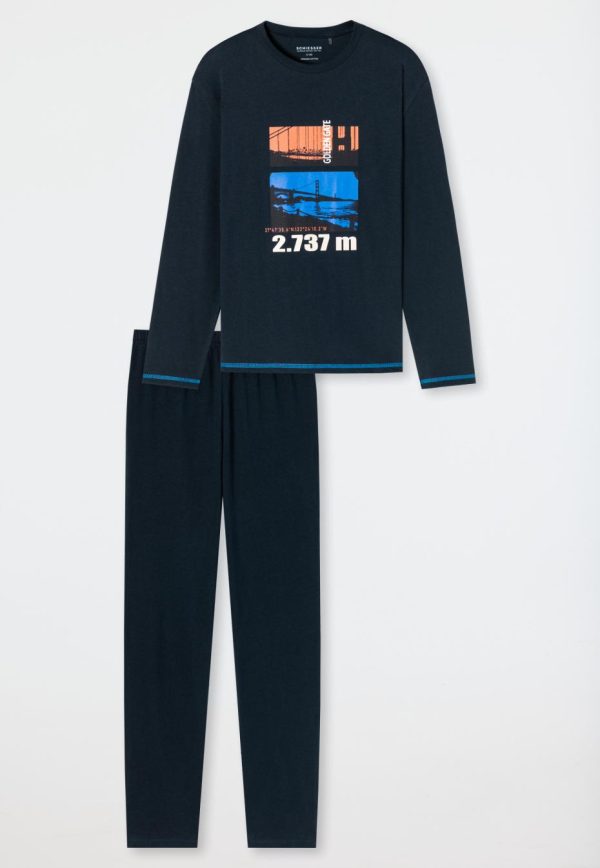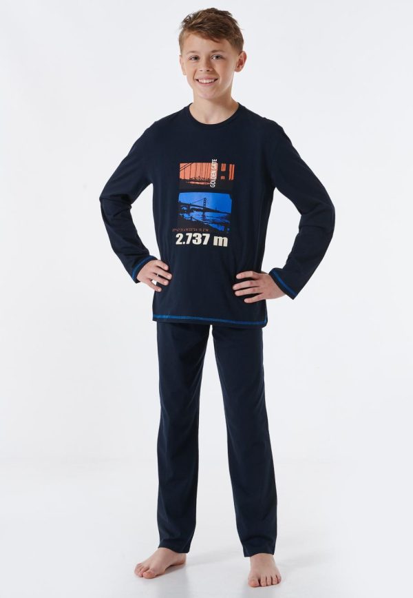 - langer Jungenschlafanzug in Nachtblau mit „Golden Gate“ Bridge Motiv und nachtblauer Schlafhose
