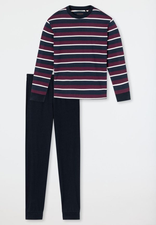 - langer Jungenschlafanzug mit gestreiftem Langarmshirt in Aubergine, Off-white und Nachtblau