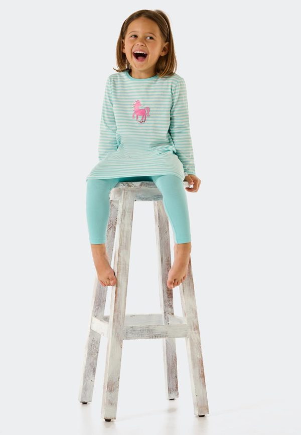 - langer, türkis-farbener Schlafanzug für Mädchen