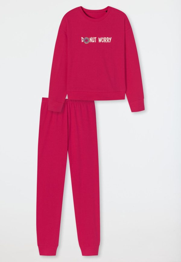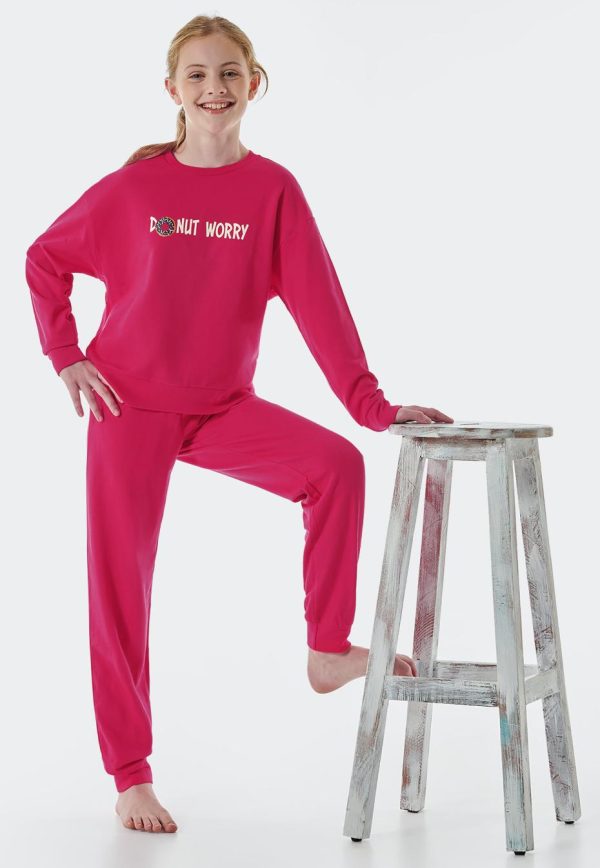 - langer, pinkfarbener Mädchen-Schlafanzug mit „DONUT WORRY“-Schriftzug