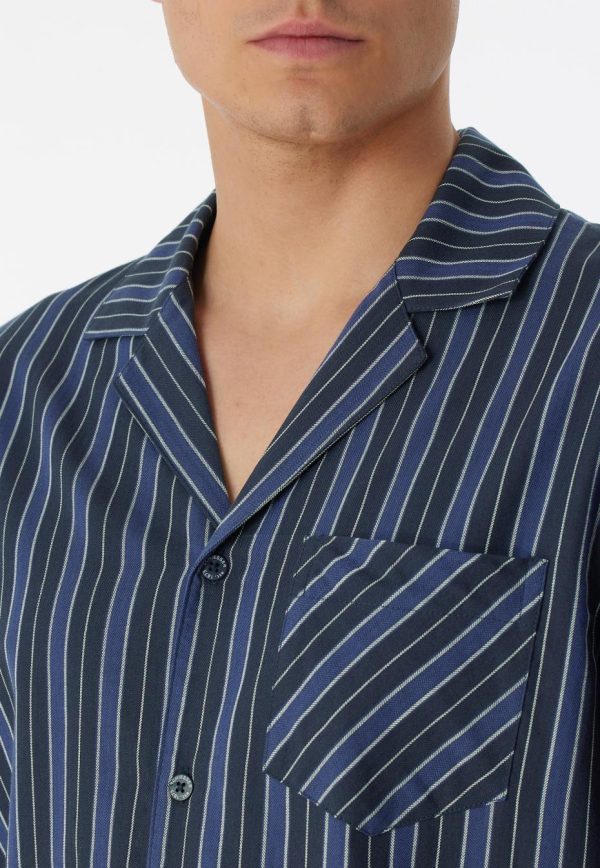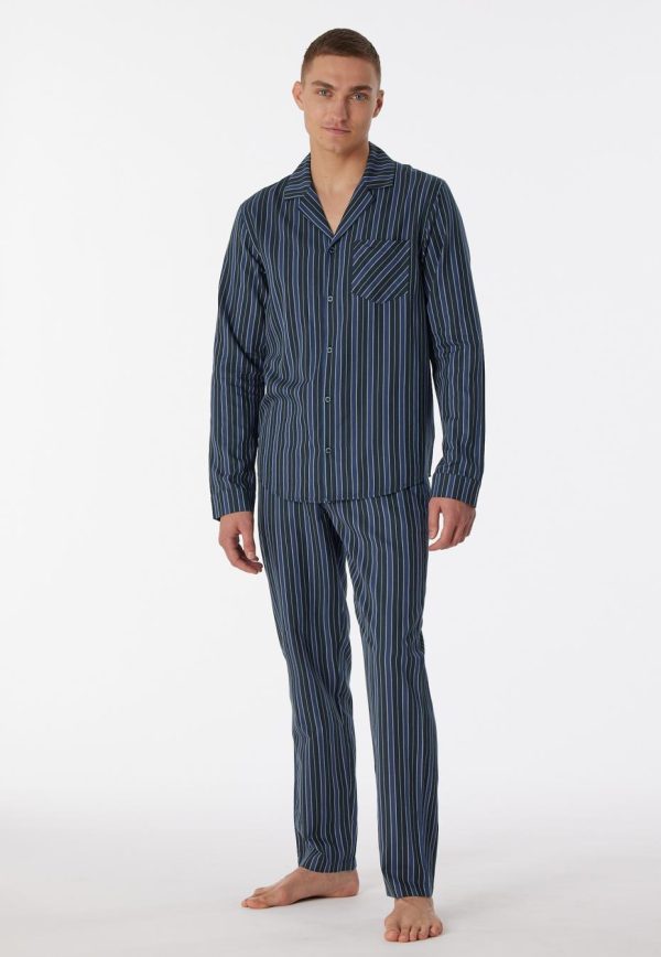 SCHIESSER Schlafanzüge | Pyjama Lang Webware Organic Cotton Knopfleiste Streifen Nachtblau Selected! Premium Nachtblau Herren