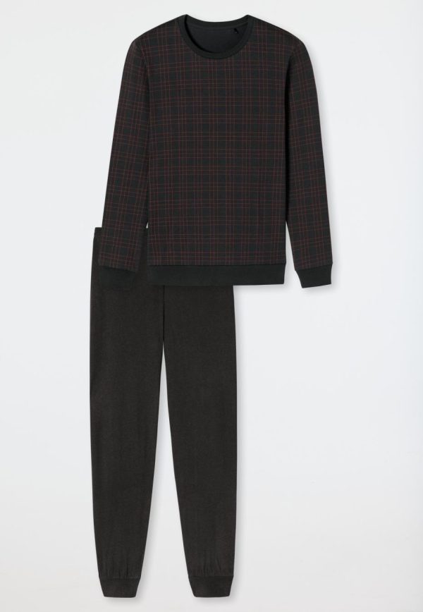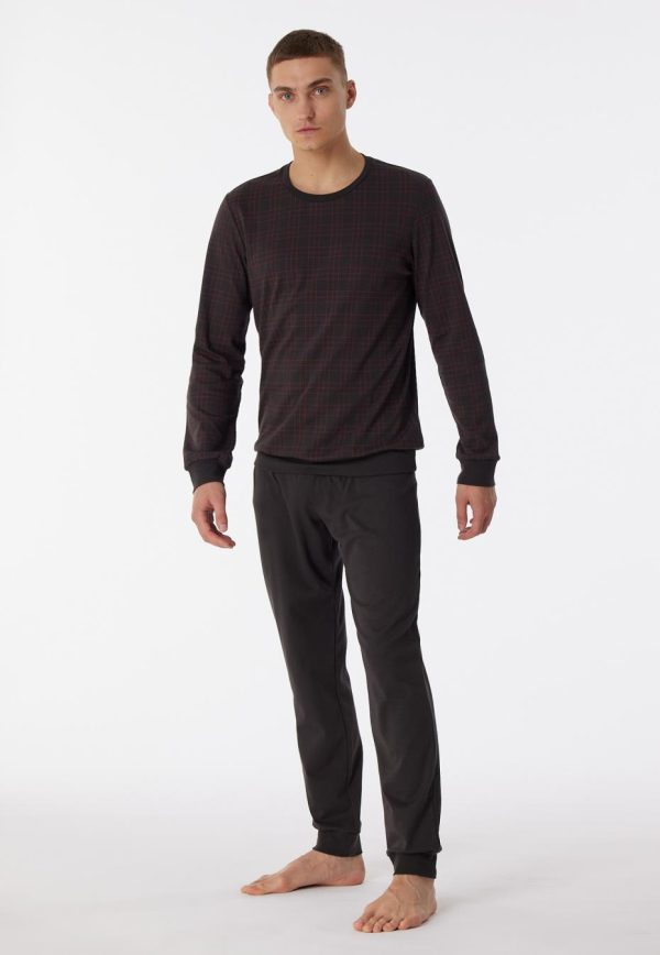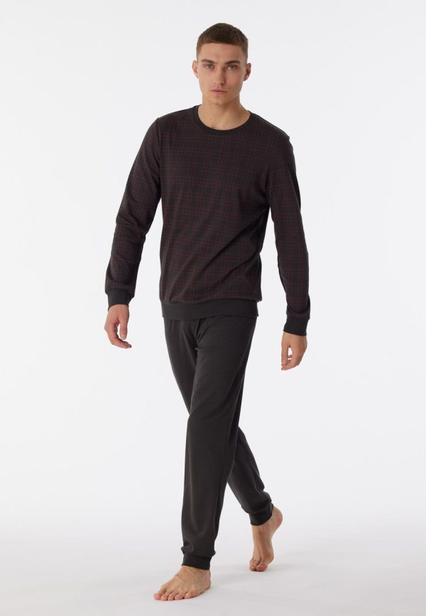 - langer Herren-Schlafanzug mit kariertem Oberteil in Anthrazit und Terracotta