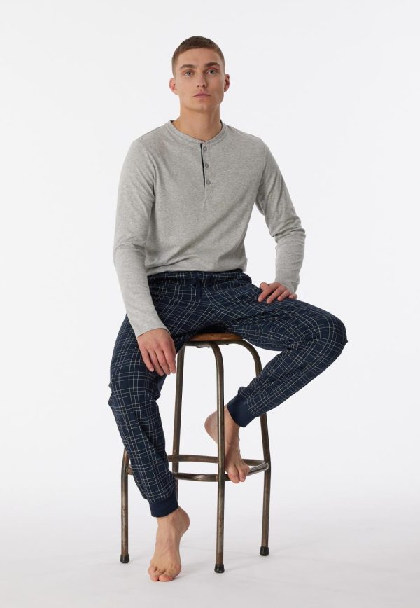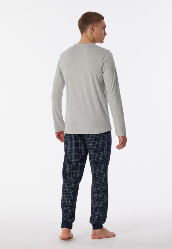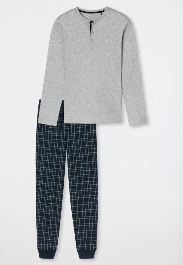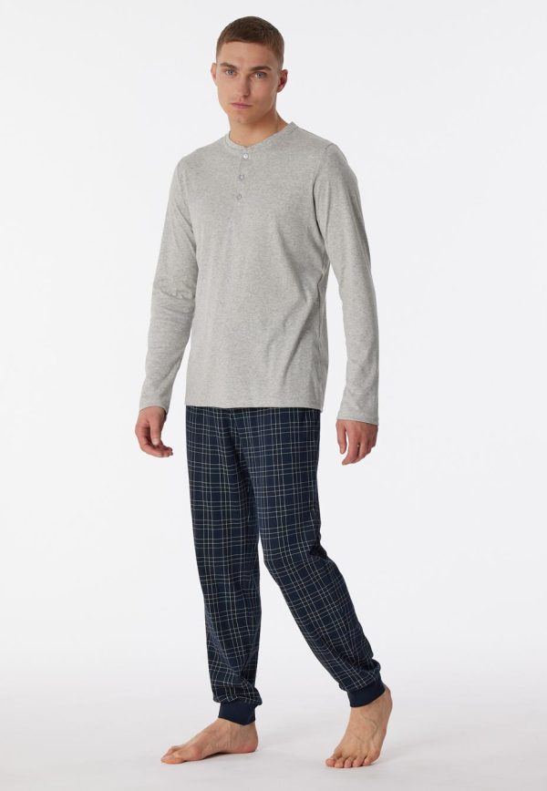 SCHIESSER Schlafanzüge | Schlafanzug Lang Interlock Bündchen Knopfleiste Karos Grau-Meliert Fine Interlock Grau-mel. Herren