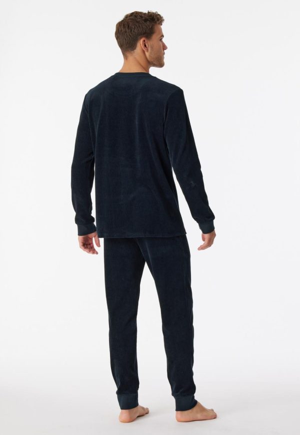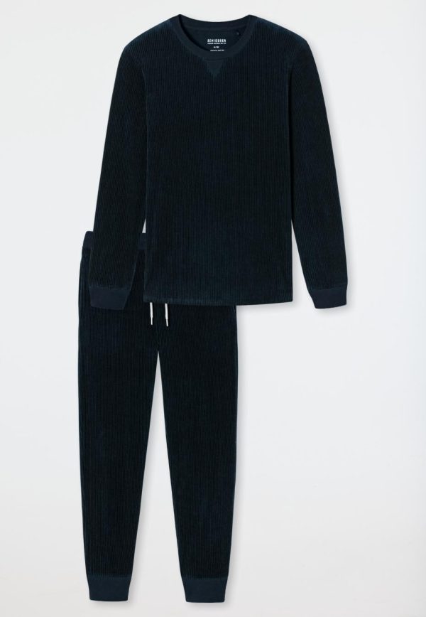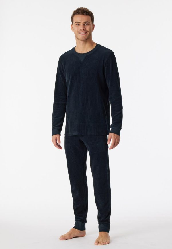 SCHIESSER Schlafanzüge | Schlafanzug Lang Kord/Velour Bündchen Streifen Nachtblau Warming Nightwear Nachtblau Herren