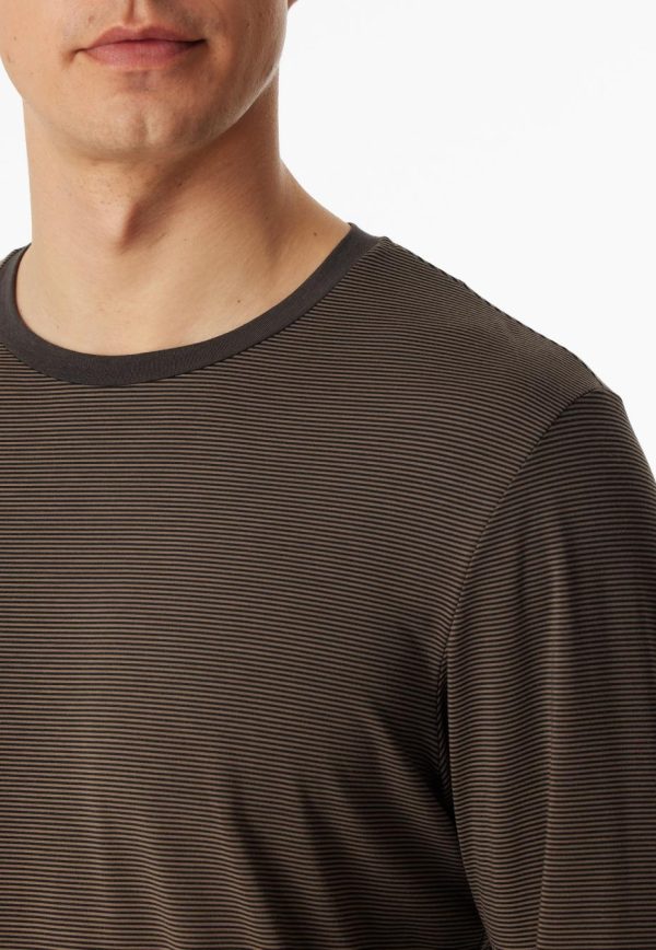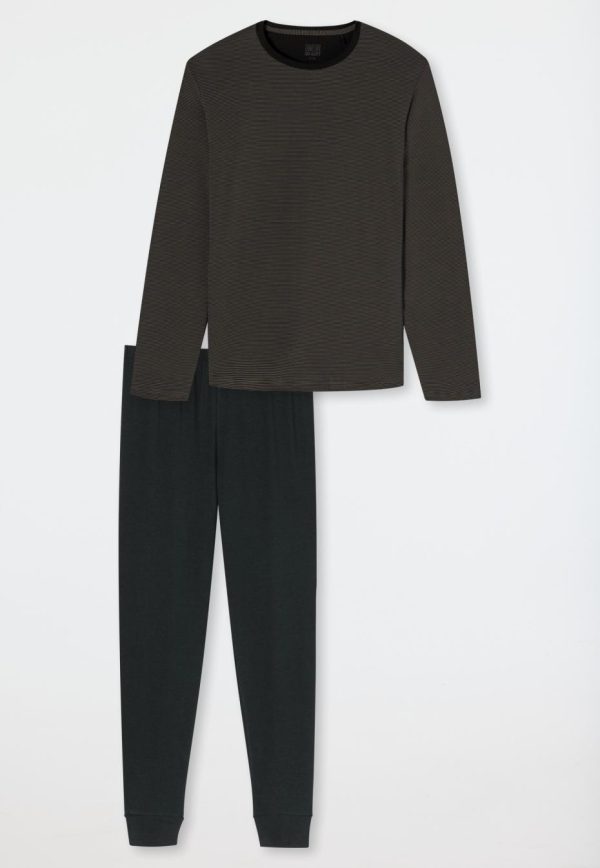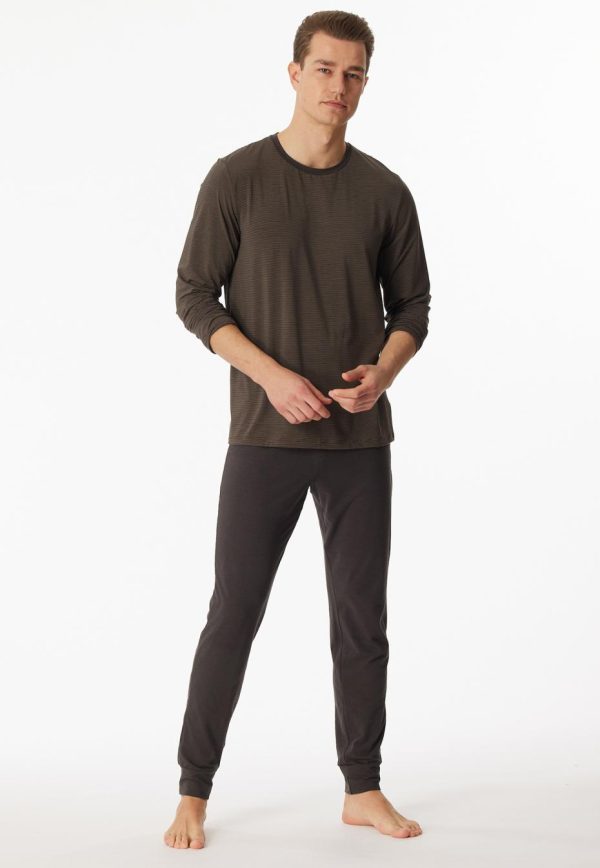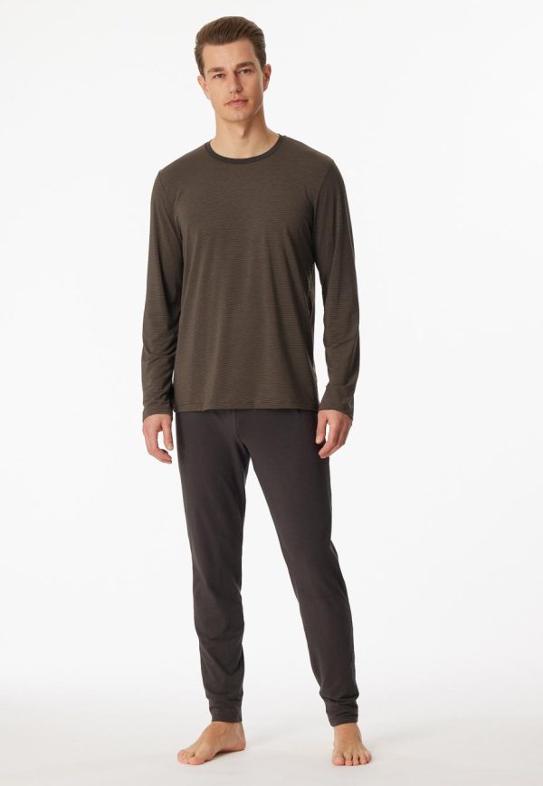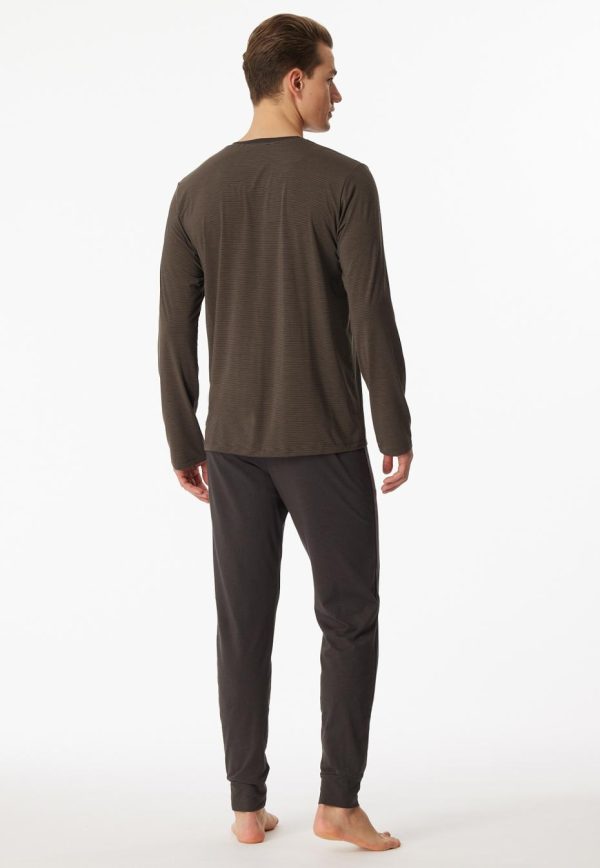 - langer, taupefarbener Herren-Schlafanzug mit anthrazitfarbenen Ringeln