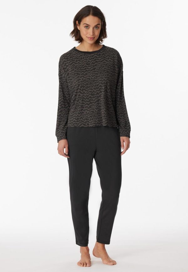 - anthrazitfarbener, 7/8-langer Damen-Schlafanzug mit Ethno-Print