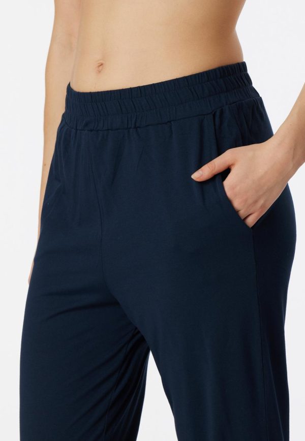 - nachtblauer, 7/8-langer Damen-Schlafanzug mit floralem Camouflage-Print