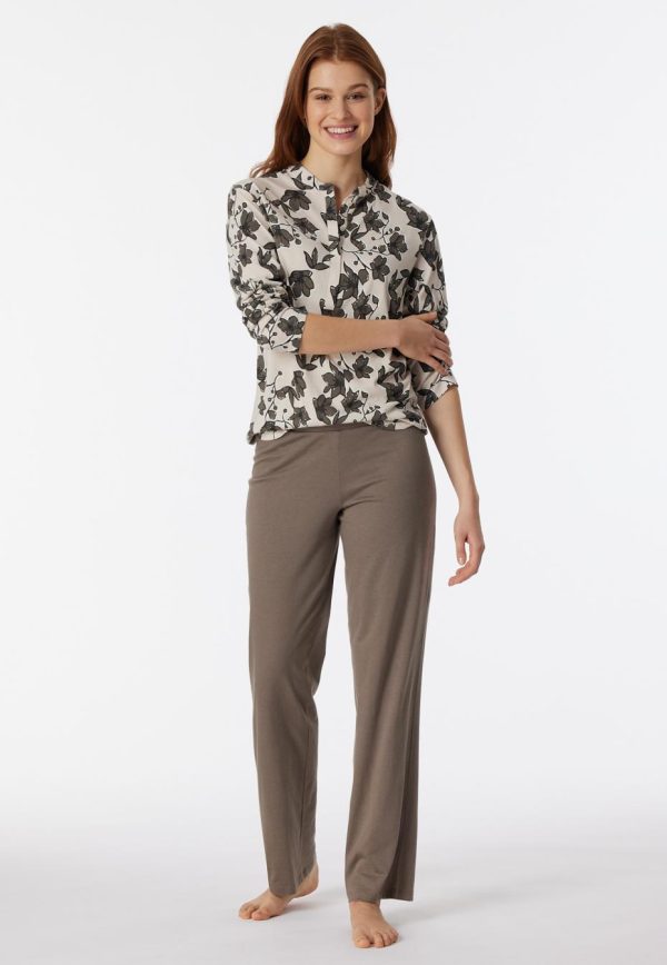 SCHIESSER Schlafanzüge | Schlafanzug Lang Organic Cotton Knopfleiste Blumenprint Sand Contemporary Nightwear Sand Damen