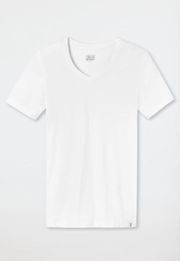 Dieses T-Shirt aus der SCHIESSER-Serie „Long Life Soft“ ist genau das Richtige für Herren, die innovatives, pillingarmes Material in perfekter Passform schätzen. Hochwertiger, elastischer Single Jersey fühlt sich dabei angenehm glatt und weich an auf der Haut und sorgt mit dem ausgeglichenen Micromodal-Anteil für ein optimales Feuchtigkeitsmanagement. Ein besonders langlebiges Shirt mit V-Neck, das sich sanft jeder Bewegung des Körpers anpasst und dadurch höchsten Tragekomfort gewährt.