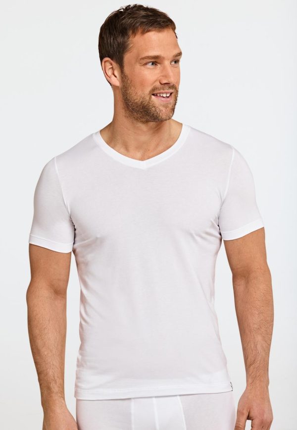 - weißes Herren-T-Shirt mit V-Ausschnitt