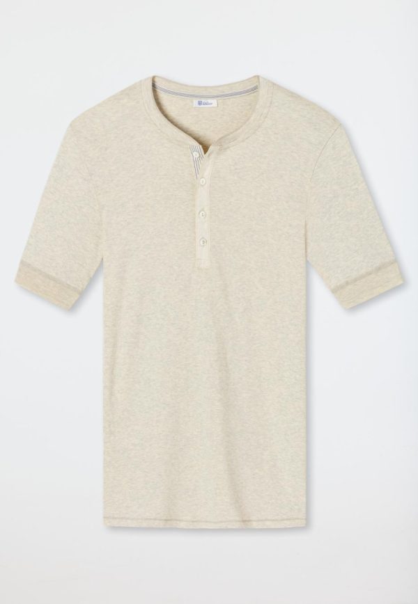 Ich bin´s, Karl-Heinz. Du kennst mich bestimmt schon, ich bin der Kultklassiker von 1923, verkörpere beste Handwerkskunst und feinste Qualität im zeitgemäßen Look. Mit mir entscheidest du dich für ein Kurzarm-Henley aus stückgefärbtem Feinripp, aus 100% supergekämmter, angenehm weicher Baumwolle. Akzente setzen meine blauen Streifen, Perlmuttknöpfe und die traditionellen Flachränder als Armabschlüsse. Du siehst also: Ich bin nicht irgendwer, ich bin das Original unter den Originalen.