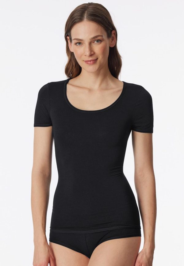 Weit mehr als ein simples Basic: Dieses Damen-Kurzarmshirt aus der SCHIESSER-Serie „Personal Fit“ ist ein wahrer Alleskönner! Atmungsaktiv, feuchtigkeitsregulierend und formstabil umgarnt super elastischer Single Jersey mit seidigem Glanz die Haut und passt sich dabei wie eine zweite Haut jeder Bewegung ganz harmonisch an. Ein wunderbar bequemes Rundhalsshirt, das vom ersten Moment an durch beste, innovative SCHIESSER-Qualität überzeugt!
