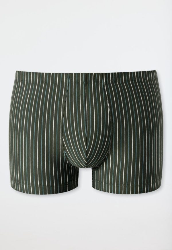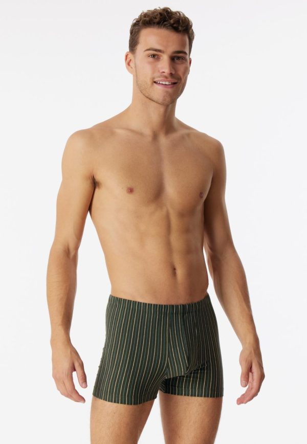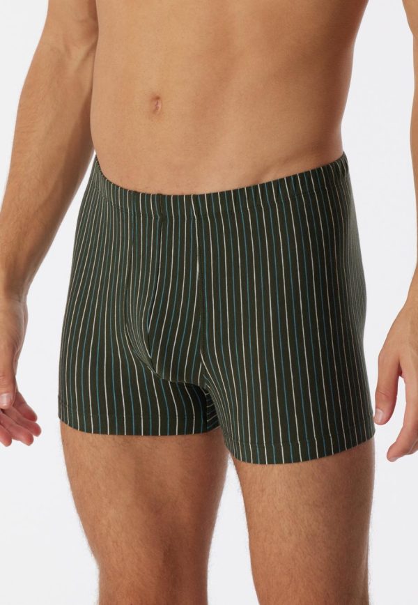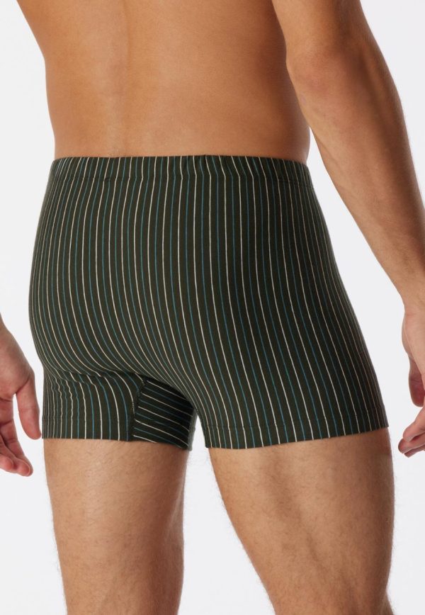- dunkelgrüne Shorts für Herren mit Streifen in Petrol und Weiß