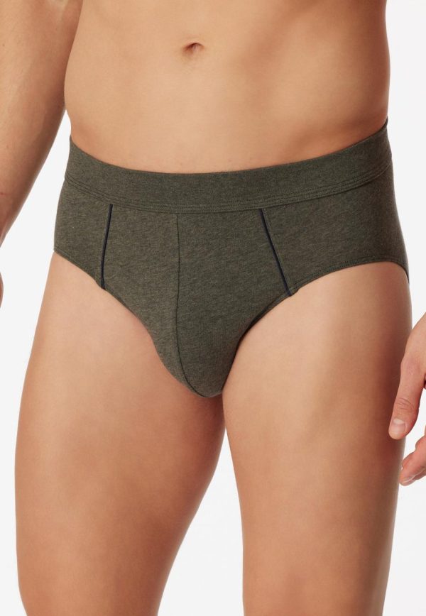 - grün melierter Minislip für Herren mit eleganten Paspeln in Blau