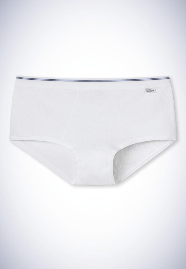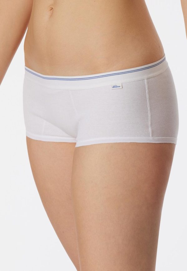 - Webgummibund mit blauen Zierstreifen und traditionellem, gewebtem Schiesser-Logo