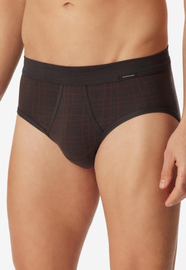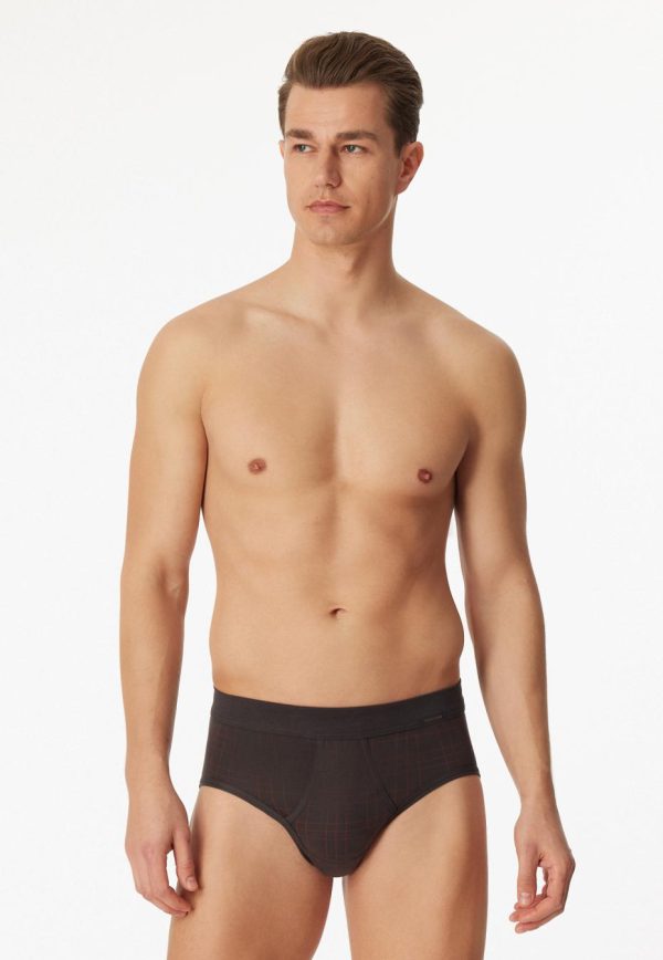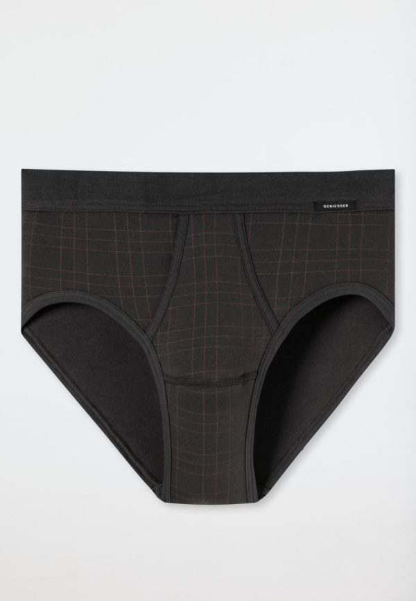 - anthrazitfarbener Herren-Sportslip mit Karomuster in Rot