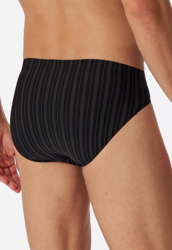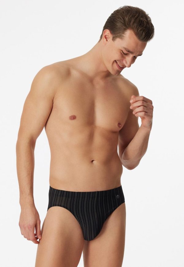 Dieser schwarze Supermini-Slip aus der der „Nachtschwärmer“-Serie ist genau das Richtige für Herren, die die Nacht auch mal gerne zum Tag machen möchten! Superleichte Microfaser sorgt dabei nicht nur für hohen Tragekomfort, sondern verspricht zudem mit dem bequemen Webgummibund eine optimale Passform. Die feinen Nadelstreifen schenken dem Slip einen eleganten Look, so dass er optisch, hautnah und auch komfortabel durch beste SCHIESSER-Qualität überzeugt!