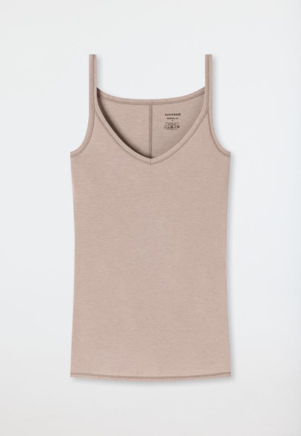 Dieses Spaghetti-Top für Damen ist Ihr Lieblings-Basic für Sport und Freizeit! Das neue Mitglied der „Personal Fit“- Familie steht für funktionales Material und einen puren Look. Der V-Ausschnitt und und die schmalen Träger schenken ihm einen femininen Touch. Elastischer Single Jersey mit Viskose liegt dabei wie maßgeschneidert an, ist atmungsaktiv und temperaturausgleichend. Ein herrlich leichtes Wäschestück mit seidigem Glanz, das jede Bewegung mitmacht: einfach beste SCHIESSER-Qualität!