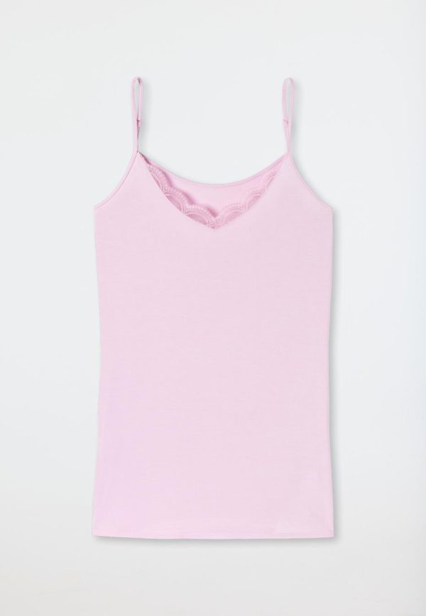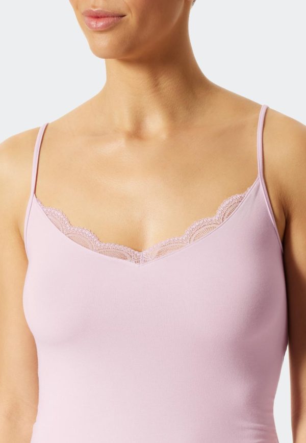 Wäsche mit dem gewissen Etwas: Dieses feminine Spaghettitop für Damen sollte in keinem Kleiderschrank fehlen! Filigrane Spitze am herzförmigen Ausschnitt schenkt ihm besonderen Charme. Für Komfort sorgen die schmalen Träger, die sich bequem regulieren lassen. Ein Highlight ist das weich fließende Material: Elastischer Single Jersey mit natürlichem Modal ist nicht nur besonders soft, sondern auch atmungsaktiv und pflegeleicht. SCHIESSER-Qualität, die höchste Ansprüche erfüllt!