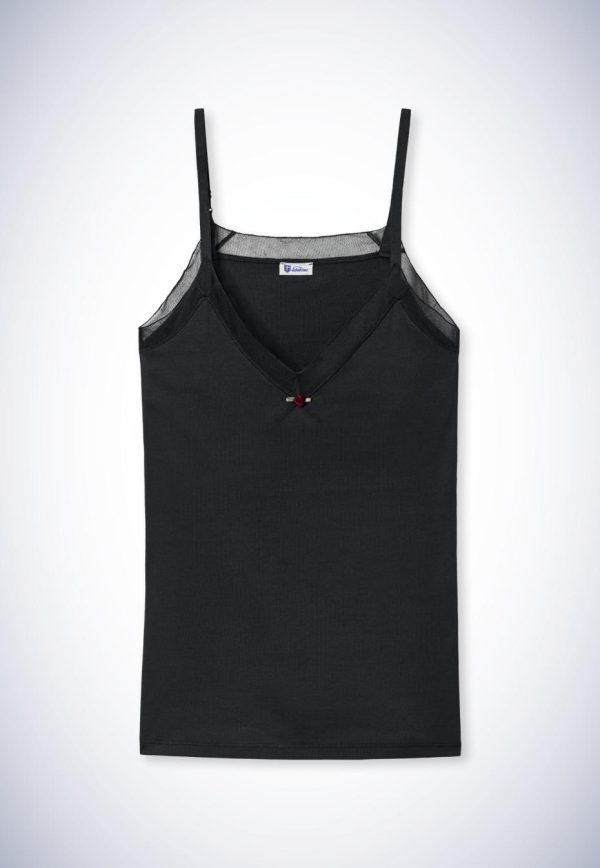 Camilla – man nennt mich auch „die Anspruchsvolle“. Ich bin ein Spaghetti-Top aus feinstem, elastischem Doppelripp aus Zwirn und fühle ich mich unvergleichbar soft an. Der leichte Glanz, zarte Tüllspitze und ein Röschen am Dekolleté prägen meinen durchweg edlen Charakter. Die schmalen Träger lassen sich verstellen. Wenn du das Besondere liebst, dann bin ich die Richtige für dich, als Wäsche oder selbst zur Denim.