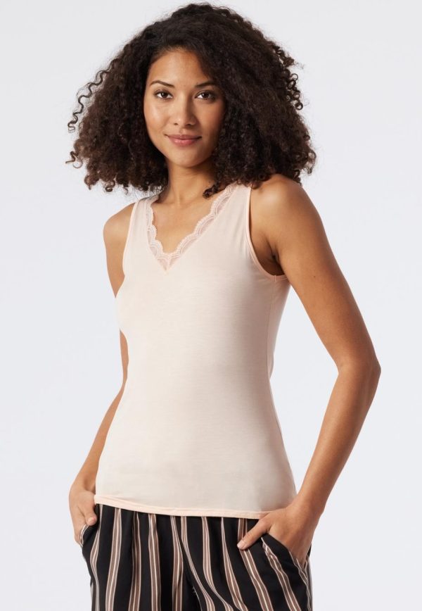 Edel und feminin: Dieses Trägertop für Damen hat das gewisse Etwas! Seidiger Glanz und filigrane Spitze am V-Ausschnitt stehen für raffinierte Eleganz. Highlight ist das hochwertige Material: Elastischer Single Jersey mit natürlichem Tencel fühlt sich wunderbar fließend und kühl an. Die natürliche Faser ist zudem besonders leicht, atmungsaktiv und temperaturausgleichend. Eine Wäschestück der Extraklasse, das höchste Ansprüche erfüllt. Natürlich beste SCHIESSER-Qualität!