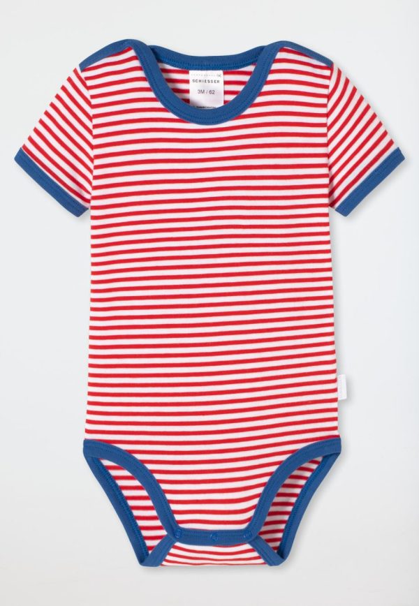 Süßer Ringel-Spaß für die Kleinsten! Dieser kurze, rote Unisex-Babybody überzeugt im maritimen Look. Mit seinen kontraststarken Einfässen in tollen Blau ist die Tagwäsche ein echter Hingucker. Die weichen Wohlfühlfasern aus Baumwolle und Bambus schmeicheln der Haut unserer Mini-Entdecker und garantieren auch an warmen Tagen ein tolles Tragegefühl. Hochwertige Druckknöpfe an den Schultern und im Schritt machen das Wickeln zum echten Kinderspiel. Rundum in bester SCHIESSER-Qualität!