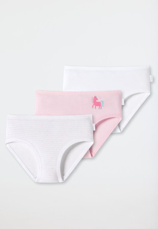 Die drei Hüftslips im praktischen Dreierpack aus 100 % weicher Bio-Baumwolle sind herrlich bequem und einfach niedlich: In Weiß, mit dezenten rosafarbenen Streifen oder ganz in Rosa mit niedlichem Pony – das Tagwäsche-Trio sorgt für ein rundum herrliches Tragegefühl. Das hochwertige Feinripp-Material umschmeichelt jederzeit die zarte Kinderhaut und garantiert bei jedem Spiel-Spaß den perfekten Sitz – natürlich in bester SCHIESSER-Qualität!