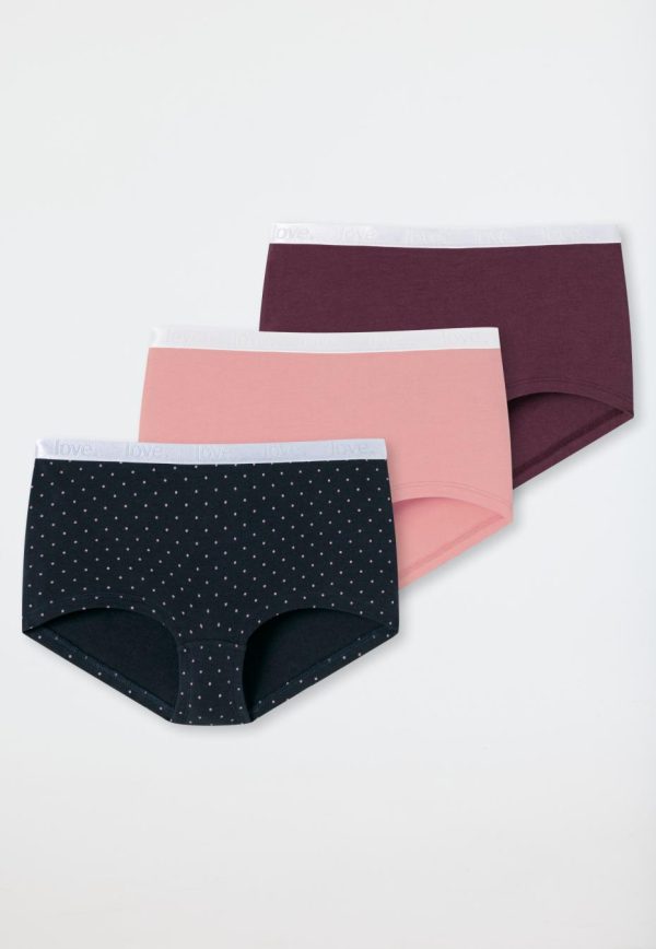 Diese bequemen Shorts sind das ideale Wäsche-Trio für modische Mädchen. Ob in romantischem Rosé, in beerigem Rot oder in Anthrazit mit Pünktchen: der coole Look überzeugt auf ganzer Linie. Elastischer Single-Jersey aus Organic Cotton und ein softer Bund mit „love.“ – Schriftzügen fühlen sich perfekt am Körper an und sorgen für ein herrliches Tragegefühl. Natürlich in bester SCHIESSER-Qualität!