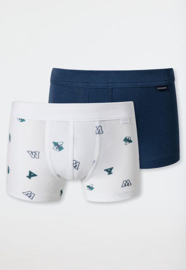 - Jungenshorts in Dunkelblau und in Weiß mit College-Allover