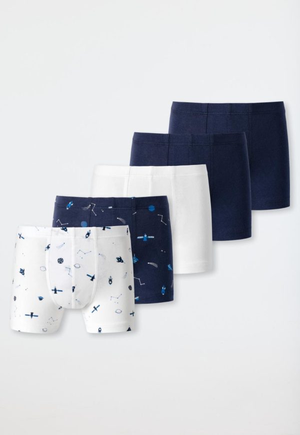 Bei diesen starken Shorts im praktischen 5er-Pack kommt jeder kleine Astronaut auf seine Kosten! Ob mit coolen Raumschiffen, unifarben in tollem Blau oder Weiß – diese Tagwäsche sorgt für strahlende Jungenaugen. Elastisches Single-Jersey-Material aus hautfreundlichem Organic Cotton und ein extra bequemer Softbund fühlen sich perfekt am Körper an und sorgen für ein rundum herrliches Tragegefühl – natürlich in bester SCHIESSER-Qualität!