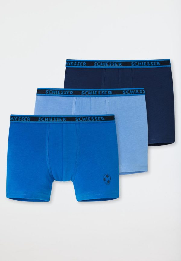 Für jede Menge Jubel sorgen diese lässigen Jungen-Shorts im praktischen Dreierpack! Ob unifarben in tollen Blautönen oder mit coolen Fußball-Motiv am Bein – dieses Multipack ist genau das Richtige für unsere kleinen Kicker. Das Single Jersey-Material aus nachhaltigem Organic Cotton und der komfortable Webgummibund sorgen für einen perfekten Sitz und jede Menge Tragekomfort beim Spielen und Toben – rundum in bester SCHIESSER-Qualität!