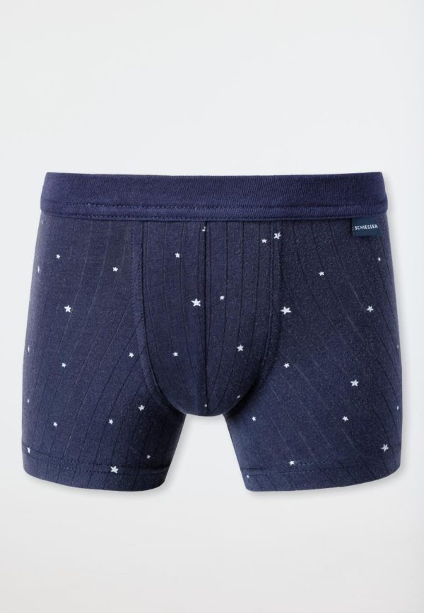 Diese coolen Jungenshorts begeistern in naturfreundlichem Tencel! Das atmungsaktive Material ist besonders sanft zur Haut und sorgt für ein rundum trockenes und kühles Tragegefühl. In modischem Dunkelblau mit feinem Glanzgarn und einem Sternen-Allover in Weiß ist die gerippte Tagwäsche ein toller Hingucker. Der komfortable Softbund und weiche Beinabschlüsse garantieren jede Menge Bewegungsfreiheit. Ein echtes Lieblingsteil für höchste Ansprüche in bester SCHIESSER-Qualität!