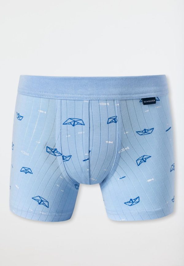 Diese tollen Jungenshorts begeistern in natürlichem Tencel! Das atmungsaktive Material ist besonders sanft zur Haut und sorgt für ein rundum trockenes und kühles Tragegefühl. In coolem Air-Blau mit verspieltem Papierschiffchen-Allover in Dunkelblau ist die gerippte Tagwäsche ein echter Hingucker. Der komfortable Softbund und weiche Beinausschnitte garantieren jede Menge Bewegungsfreiheit. Ein echtes Lieblingsteil für kleine Naturburschen. Beste SCHIESSER-Qualität inklusive!