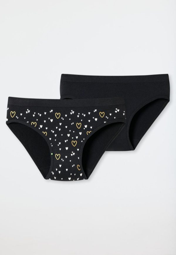 - Mädchenslips in in Uni-Schwarz und in Schwarz mit Herzchen-Muster