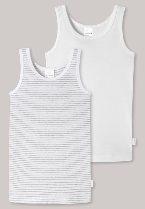 Rundum natürlich – diese beiden Mädchen-Unterhemden sorgen gleich im Doppelpack für richtig gute Laune! Das hochwertige Feinripp-Material aus 100% Organic Cotton fühlt sich besonders weich und angenehm auf der empfindlichen Kinderhaut an. Ob im strahlendem Weiß oder fröhlich geringelt – dieses Tagwäsche-Duo garantiert ein herrliches Tragegefühl und ganz viel Komfort. Ein echtes Dreamteam in jeder Menge bester SCHIESSER-Qualität!